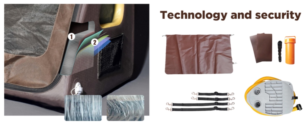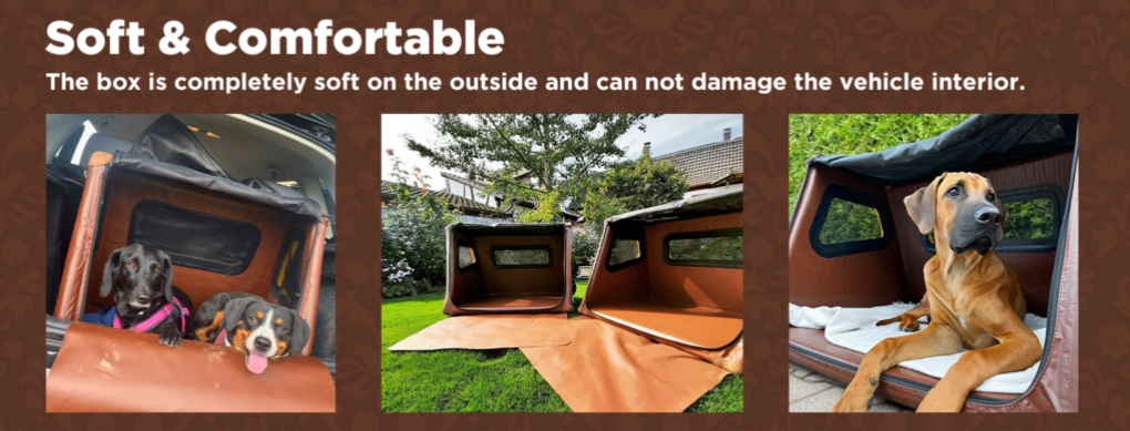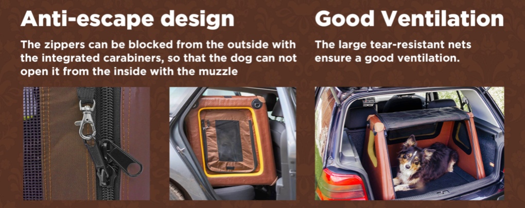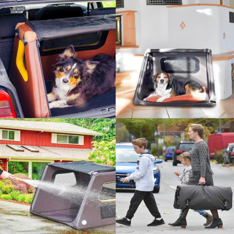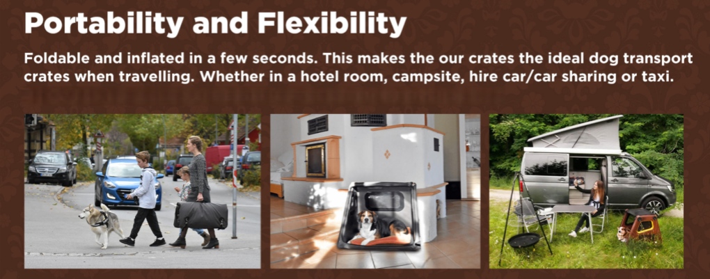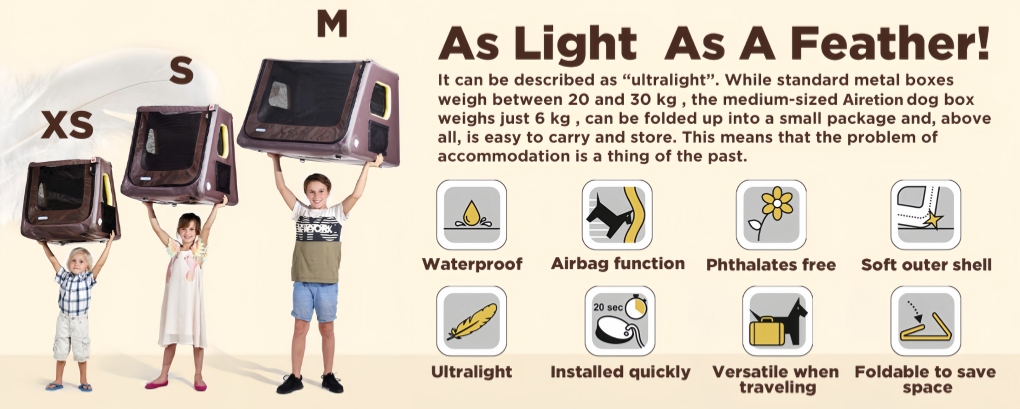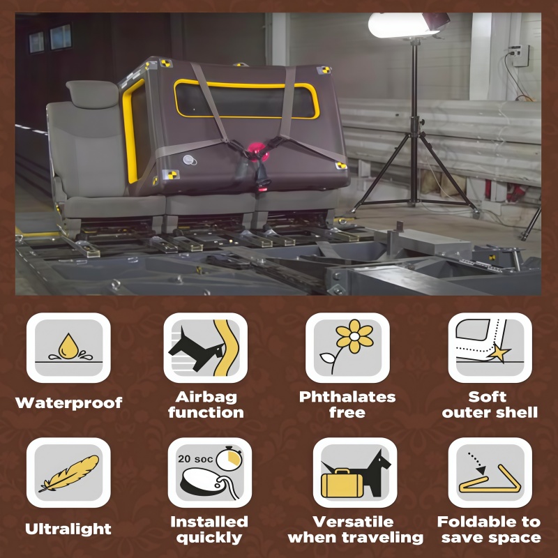 1. AIRBAG FUNCTION AIR FLOOR CUSHIONING: Airetion inflatable soft dog crate for car offers "airbag function" to maximum impact safety for dogs during travel in case of emergency braking or sudden evasive movement. This dog travel crate have passed the crash test with flying colors! Your dog is protected by 4cm thick air chambers! This dog kennel outdoor has a sturdy inflatable 4cm thick floor which offers perfect cushioning and absolutely comfortable transport for your furry companion.