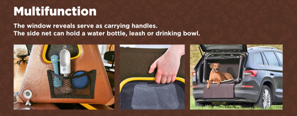 4.ULTRALIGHT ROBUST FODABLE DOG CRATE: Without any metal frame to install, Airetion soft sided dog crate only takes 20 seconds to set up. This collapsible dog crate can be folded into a small package, especially convenient to carry and easy to store. This portable dog crate is design for travel, camping trips, just as a small additional luggage on the plane or rental car. You can put the travel crate on the trunk, on the car seat, or in the room, it is a perfect travel kennel for dogs indoor and outdoor.