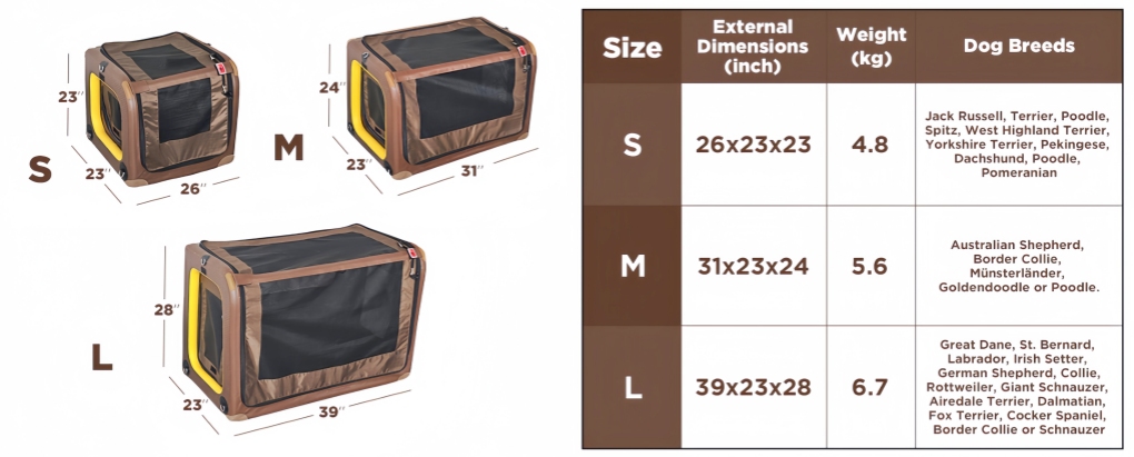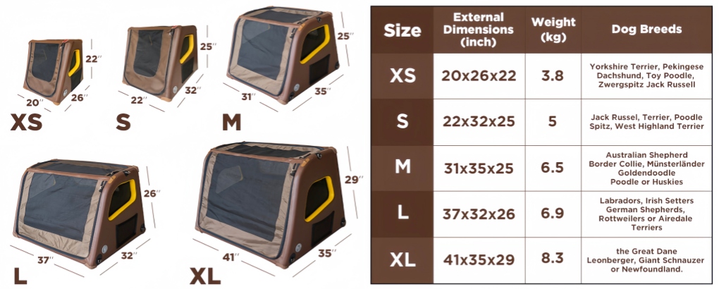 5.FROM XS TO XXL SIZE:All the Airetion dog crate for trunk uses military grade sturdy material, it is tough enough for some scratching and biting. The dimension of the very small size dog crate is L20" x W26" x H22",recommended for extra small dogs such as Yorkshire Terrier, Pekingese, Dachshund, Toy Poodle, Zwergspitz Jack Russell.