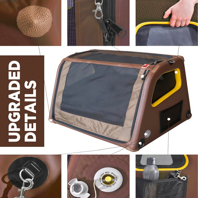 Inflatable Dog Travel Crate is a lightweight, portable pet carrier designed for safe and comfortable transportation. Made from durable, puncture-resistant materials, it can be quickly inflated and deflated for easy setup and storage. The crate provides a cozy, enclosed space that keeps pets secure during car rides, flights, or outdoor adventures. Its soft walls ensure comfort, while mesh windows allow ventilation and visibility. Ideal for travel-loving pet owners, this inflatable crate combines convenience, safety, and comfort, making every journey with your furry friend easier and more enjoyable.